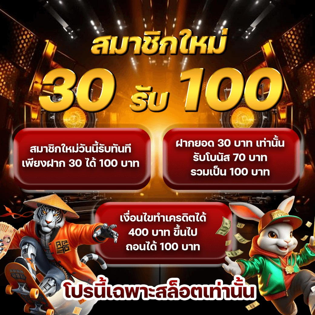 ฝากยอด 30 บาทเท่านั้นรับโบนัส 70 บาทรวมเป็น 100 บาท